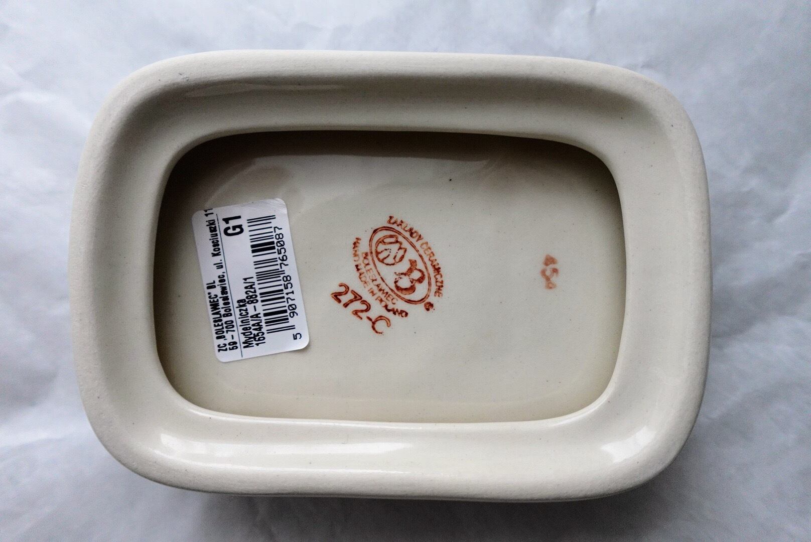 紺色の花びらにオレンジの花芯の小花が散りばめられたデザイン。サイドにも密に施されています。大きめの石鹸ものる曲線のエレガントなフォルムです。 size : 12.3 x 8.8、 H 2.8 cm
